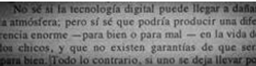 9. Paragrafo honetan etorkizun batean garrantzia galduko dituzten gauzei buruz hitz egiten du, izan ere, zalantzan jartzen ditu funtsezkoak diren hiru gaitasun; irakurketak, idazmenak eta aritmetikak. Nire uztez, aipatutako hiru hauek, berariazko garrantzia daukate eta ezinbestekoak dira bizitzan, edozer gauza egiteko beharrezkoak ikuzten ditudalako. Beraz, aipatzen duen galera edo etorkizunean gertatuko den balioespen hori nire ustetan ez litzateke horrela izan behar. Egunerokotasunean edozein testuinguruan erabitzen diren funtzezko gaitasunak dira eta teknologian murgilduz gero, gaitasun horiek oso erabilgarriak iruditzen zaizkit.